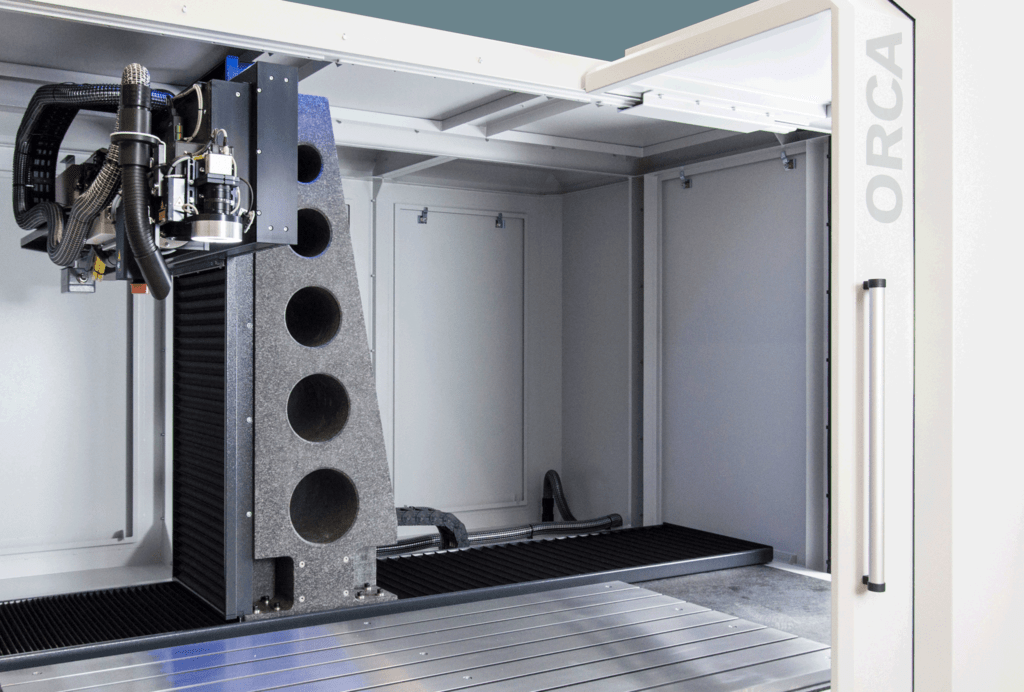 ORCA® es el centro láser XXL de ACSYS. El sistema destaca por su espacio y estabilidad para piezas voluminosas. El resultado es precisión a gran escala.