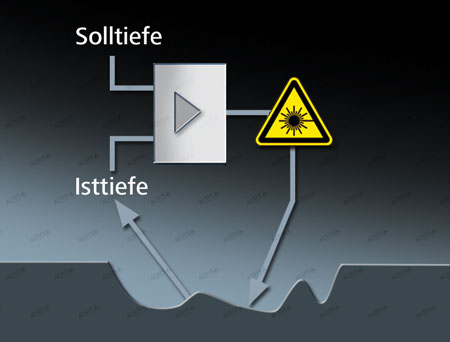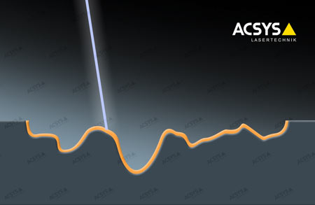 La imagen de la derecha muestra el principio básico del grabado láser 3D. Con el grabado láser 2.5D y 3D, la superficie de la pieza se elimina a una cierta profundidad en un proceso controlado por software. El material se evapora capa por capa para que la estructura deseada aparezca gradualmente. La eliminación de profundidad de alta precisión en tres dimensiones es posible con el software AC LASER y los centros de mecanizado por láser de ACSYS.