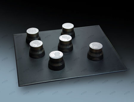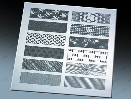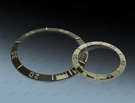 La flexibilidad de los láseres al seleccionar fuentes y las opciones de diseño altamente diversas ofrecen al usuario posibilidades de diseño casi ilimitadas. El ejemplo de la izquierda muestra dos procesos: La pintura se retiró del bisel de la izquierda con el láser, mientras que los números y las formas se grabaron en el metal. El bisel de la derecha tiene los números y las formas grabados con el láser y luego rellenados con pintura.
