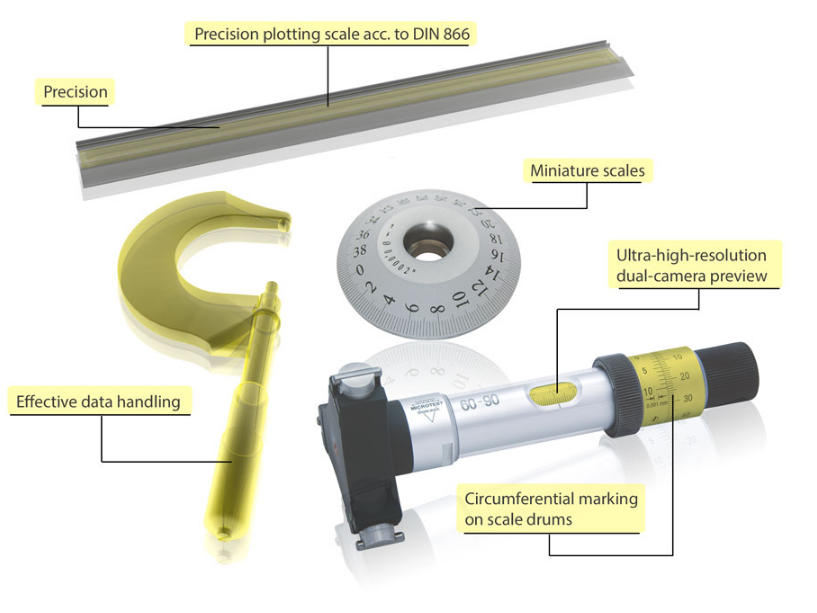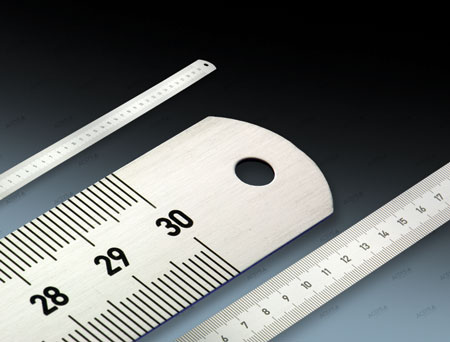 La escala de trazado está hecha de acero inoxidable con banda elástica. Los requisitos especiales del centro de procesamiento láser son la precisión repetible y los ejes transversales altamente precisos, así como el software AC-LASER de alto rendimiento, que permite la segmentación exacta de la escala.